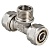 Фитинг обжимной – тройник с переходом на наружную резьбу для присоединения металлополимерных (металлопластиковых) трубопроводов. Резьба фитинга – наружная трубная по ГОСТу 6357.Корпус фитинга выполнен из горячештампованной никелированной латуни марки.В проточках штуцера корпуса расположены два уплотнительных кольца из EPDM (этилен - пропиленового каучука).